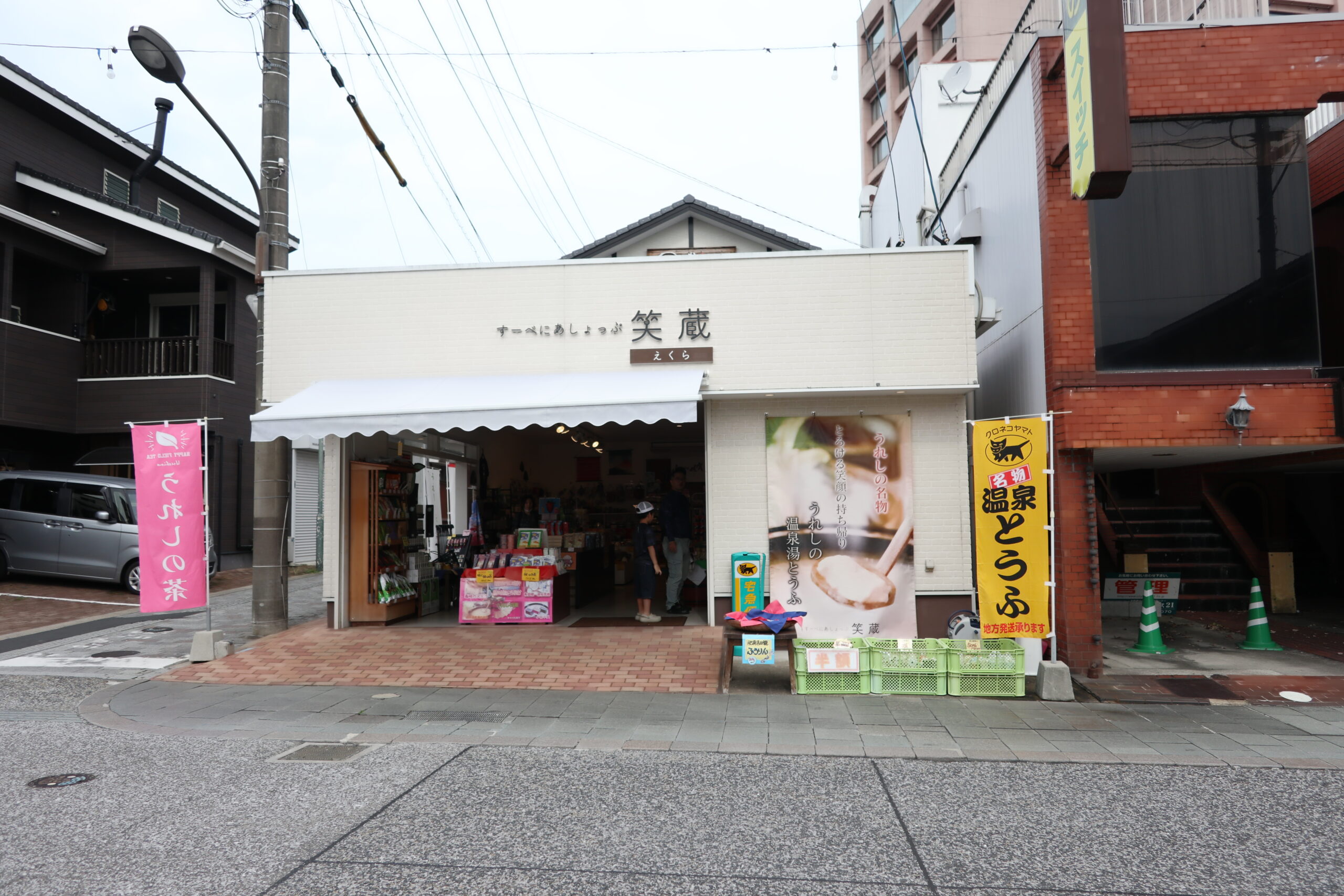 嬉野温泉街にある「すーべにあしょっぷ笑蔵」は、“佐賀を持ち帰る”をコンセプトにしたお土産店。佐賀県内の魅力がぎゅっと詰まった品揃えで、観光客を中心に多くの人が立ち寄る。店内には、嬉野茶や温泉湯豆腐をはじめ、有田焼・波佐見焼・吉田焼といった器類、嬉野茶の茶葉ふりかけ、小城羊羹、呼子のいかしゅうまいなど、佐賀県を代表する特産品が並ぶ。お茶やお菓子を中心に、佐賀の銘菓と呼ばれる商品を幅広く取り揃えているのが特徴だ。