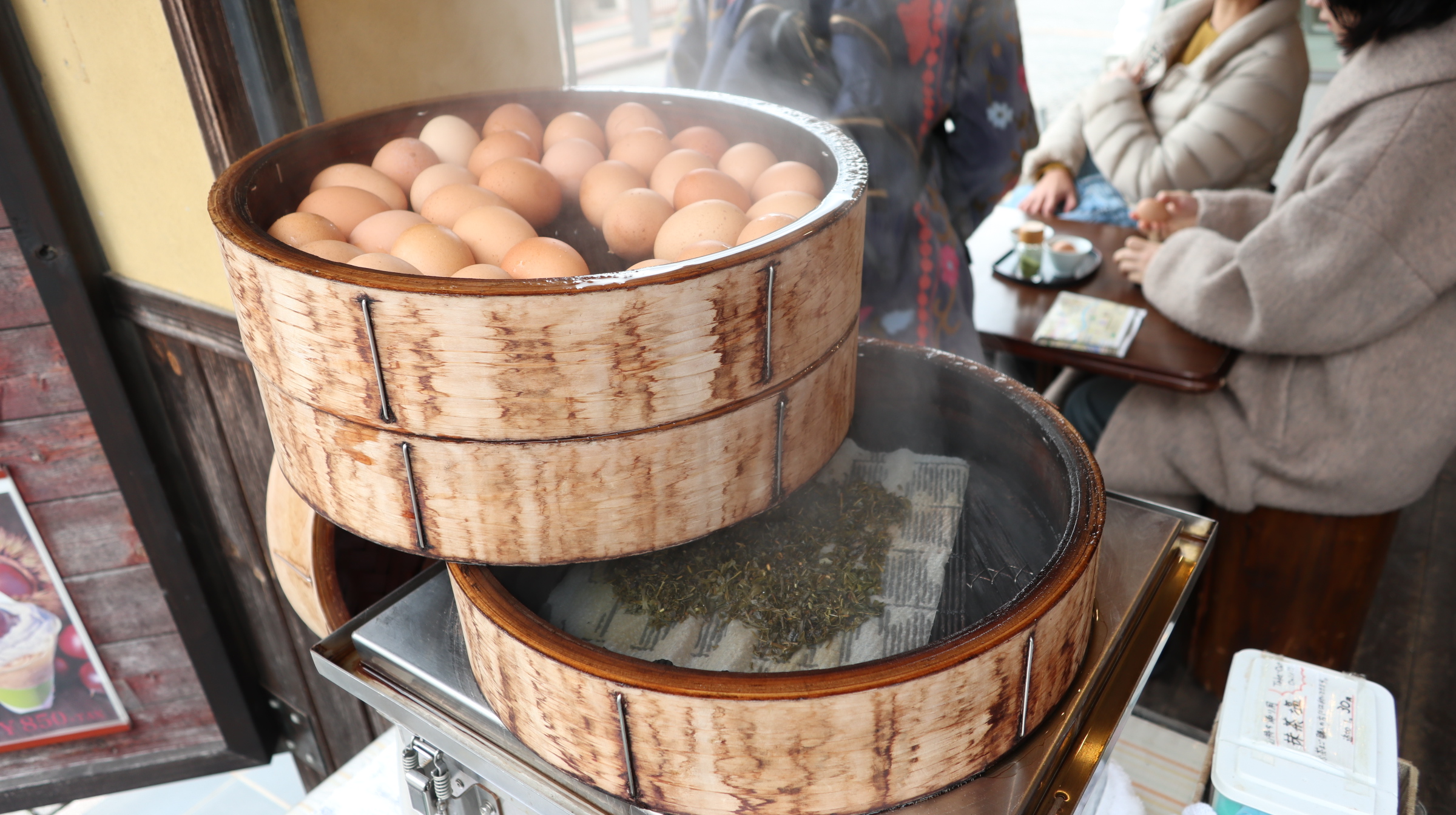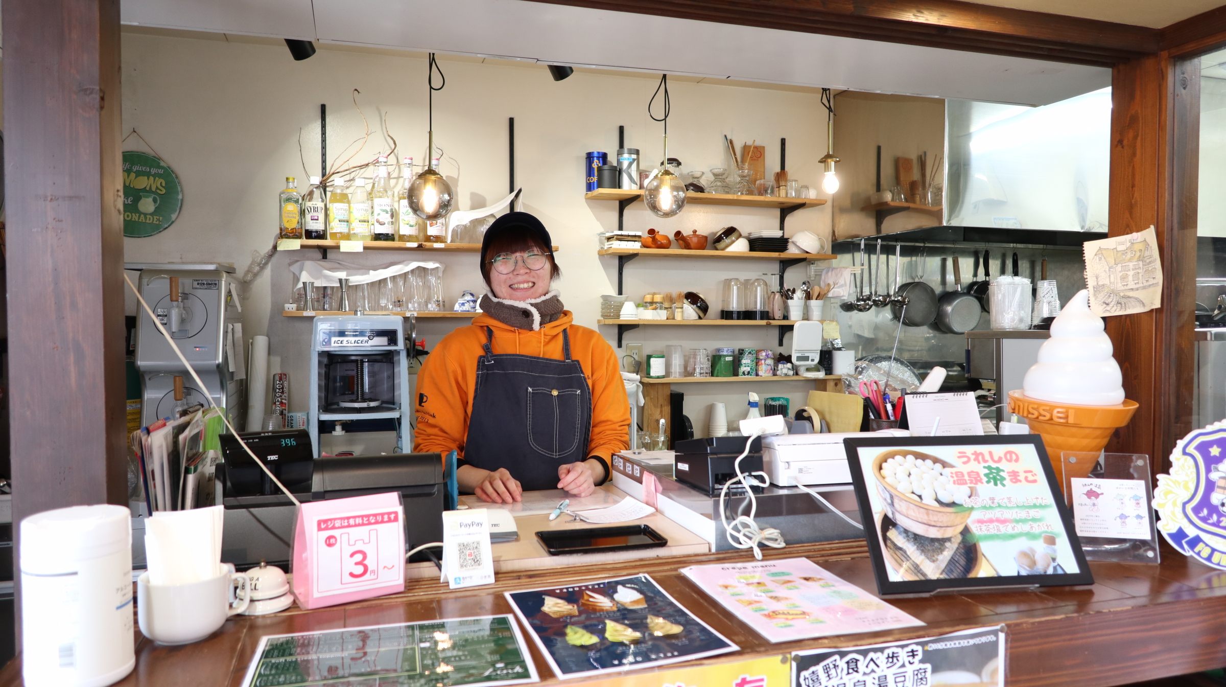 お土産と軽食を楽しめる店として親しまれている「温泉街道 輪来」では、嬉野ならではの素材を生かしたスイーツメニューが豊富に揃う。中でも人気を集めているのが、うれしの紅茶・ほうじ茶・抹茶を使用したソフトクリームだ。お茶の風味をしっかりと感じながらも、後味は軽やかで、観光の合間に立ち寄る人も多い。また、生地にうれしの抹茶を練り込んだクレープも好評だ。香り高い抹茶の風味と具材のバランスが楽しめる一品。軽食としては、嬉野茶塩で味わう「温泉茶まご」も人気。温泉水と茶葉でじっくり蒸された卵は、ほんのりとした香りとやさしい味わいが特徴で、嬉野らしさを感じられる商品となっている。