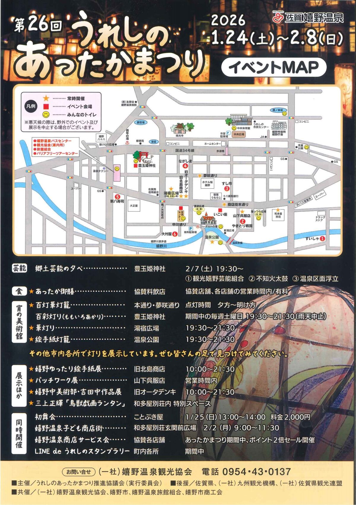 令和8年1月24日(土)より嬉野温泉の冬の風物詩『第26回うれしのあったかまつり』が始まります!
